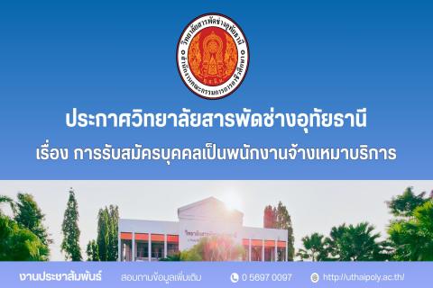 หัวข้อ : ประกาศวิทยาลัยสารพัดช่างอุทัยธานี เรื่อง การรับสมัครบุคคลเป็นพนักงานจ้างเหมาบริการ :: เข้าชม :: 55
