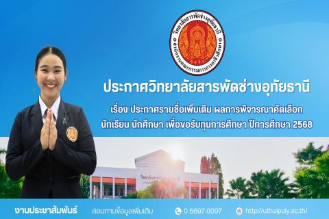 หัวข้อ : เรื่อง ประกาศรายชื่อเพิ่มเติม ผลการพิจารณาคัดเลือก นักเรียน นักศึกษา เพื่อขอรับทุนการศึกษา ปีการศึกษา 2568 :: เข้าชม :: 57