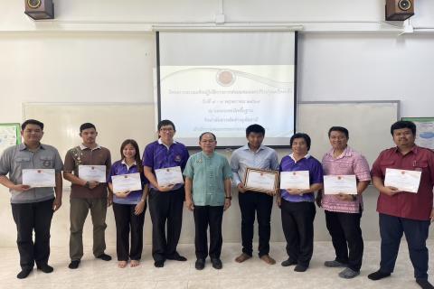 หัวข้อ : พิธีมอบเกียรติบัตรผู้เข้ารับการอบรมโครงการอบรมเชิงปฏิบัติการการซ่อมแซมและปรับปรุงเครื่องกลึงให้แก่ครูแผนกวิชาเทคนิคพื้นฐานและครูแผนกวิชาไฟฟ้ากำลังและมอบเกียรติบัตรขอบคุณวิทยากร ที่ให้ความรู้แก่ ผู้เข้ารับการอบรม ระหว่างวันที่ 7-9 พฤษภาคม 2567 :: เข้าชม :: 240