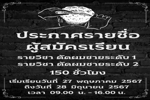 หัวข้อ : ประกาศรายชื่อผู้เรียนหลักสูตรตัดผมชาย ระดับ1" "หลักสูตรตัดผมชาย ระดับ2" :: เข้าชม :: 232