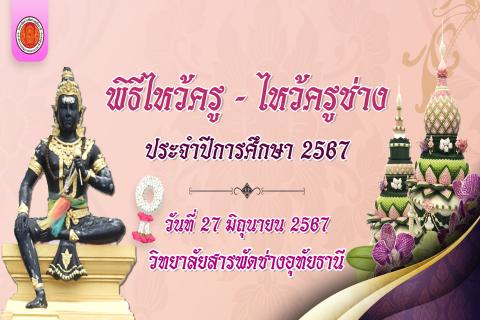 หัวข้อ : พิธีไหว้ครู - ไหว้ครูช่าง ประจำปีการศึกษา 2567 วิทยาลัยสารพัดช่างอุทัยธานี วันพฤหัสดีที่ 27 มิถุนายน 2567 :: เข้าชม :: 312